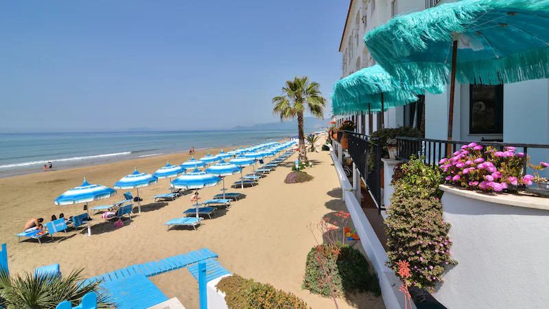 Hotellet ligger mittemot Terracinas strand och erbjuder enkla, luftkonditionerade rum med eget badrum och Wi-Fi. Rummen med panorama utsikt har en balkong och utsikt över Tempio di Giove-templet eller Medelhavet. Deras restaurang serverar både italienska och internationella rätter och har en omfattande vinlista. Parasoll och solstolar kan hyras på hotellets privata strand, som ligger framför byggnaden. Hotellets chef Fredrica hälsar er välkomna. Baren ligger på hotellets bottenvåning med möjlighet att beställa rumsservice, barservicen är också tillgänglig på begäran på hotellets takträdgård. Hotellrummen har olika färger på de olika våningarna, blå ton våning 3, gula rum på andra våningen och gröna på första. Från taklterrassen har man en fantastisk utsikt över berget med de arkeologiska lämningarna av Jupiter Anxurs tempel, här kan man koppla av och njta av en drink.