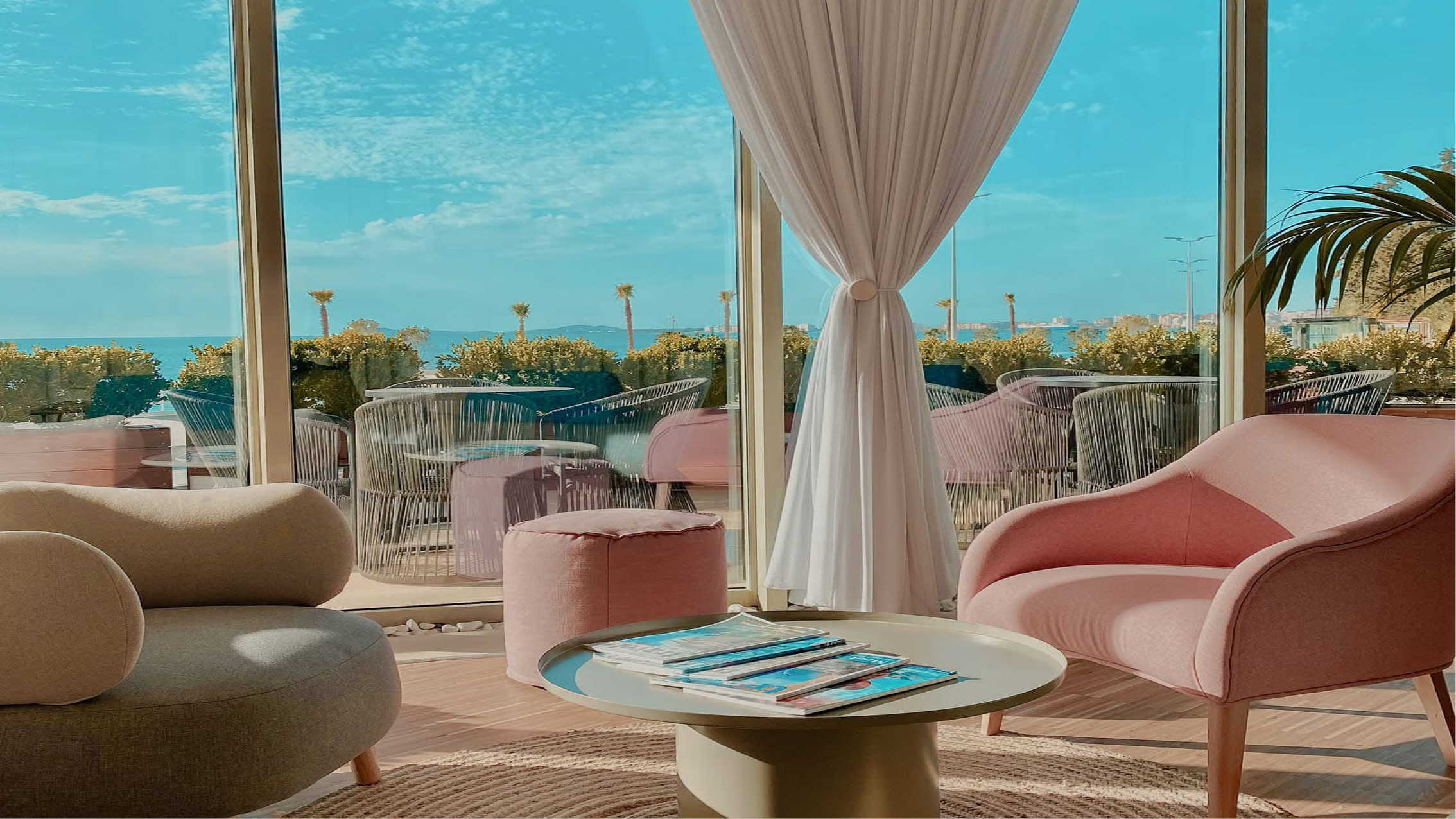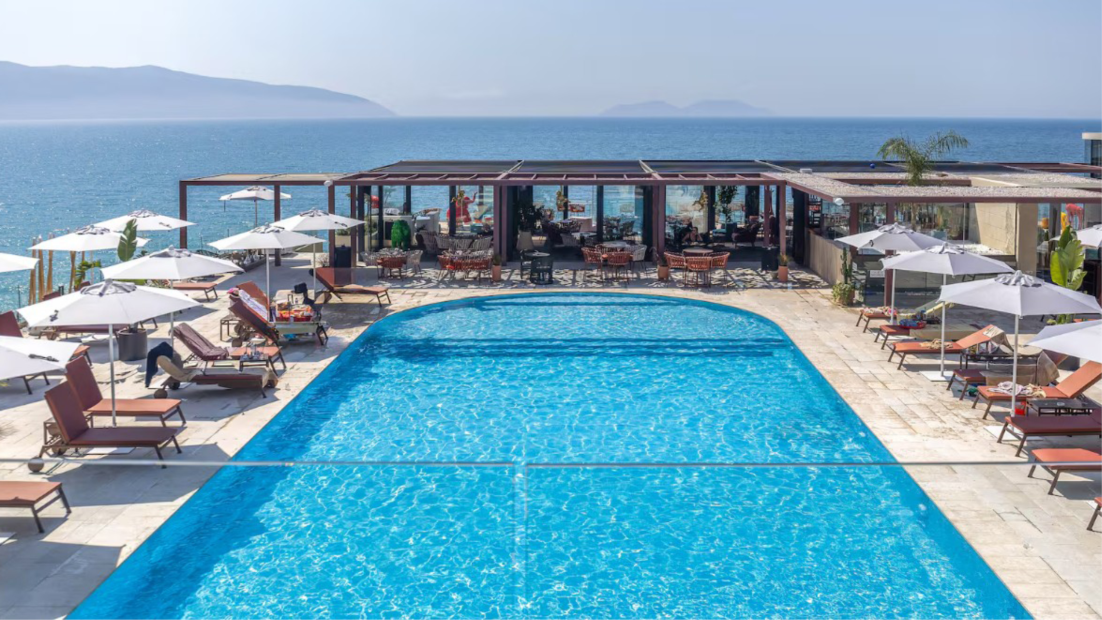 Vi bor på Priam Hotel Luxury Resort, ett stilfullt hotell med fantastiskt läge vid havet strax utanför staden Vlora. Hotellet erbjuder en harmonisk och modern miljö med hög komfort – perfekt för återhämtning efter dagens aktiviteter. Här finns kristallklart vatten, mjuk sand på hotellets privata strand, pooler, spa och en avslappnad atmosfär som gör det lätt att njuta av solen, ta ett svalkande dopp eller bara vara.