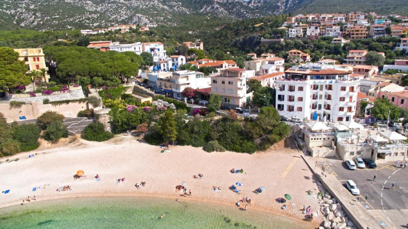Hotel Bue Marino, är beläget bara några meter från hamnen och från sandstranden "Centrale" och klippstranden "Acqua Dolce". Hotellet byggdes 1959 och kallades då "Bue Marino" efter den grotta där Medelhavets munksäl (kallad Bue Marino av de lokala fiskarna) brukade leva. Hotellet har en restaurang med fin utsikt över bukten och en cocktailbar samt en liten jacuzzi på taket.