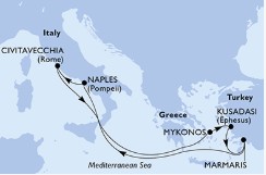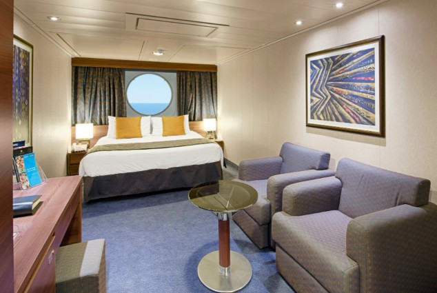 Yta ca 14 kvm, balkong ca 3 kvm, ospecificerad hytt, kan bli placering var som helst på fartyget (hytterna ligger från däck 5 uppåt)