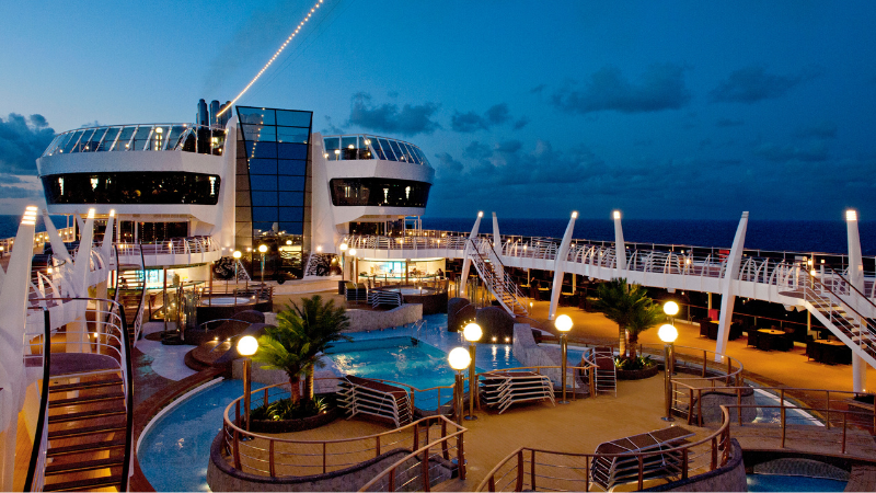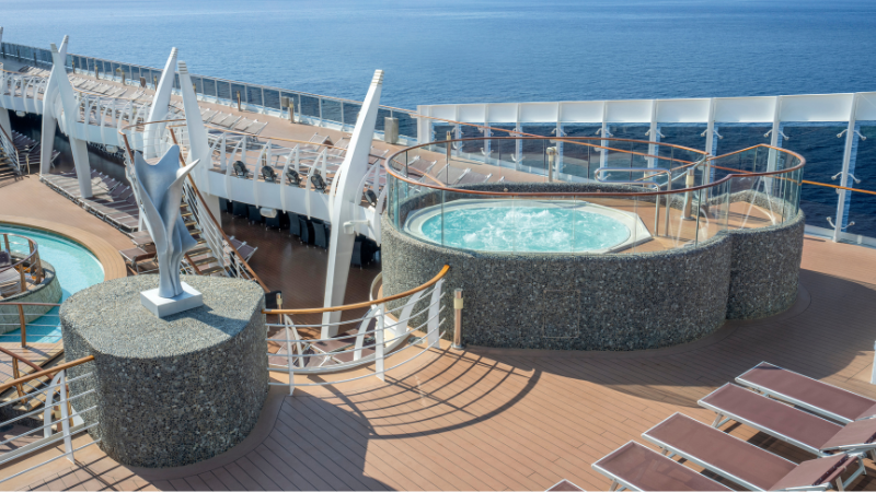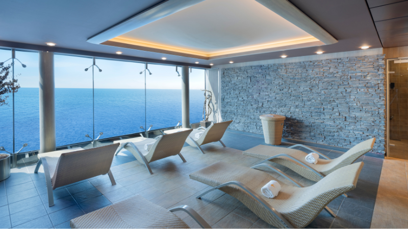 SPA-hytt som ger fritt tillträde till spa-avdelningen (bastu, jazzuzzi och relaxrum), badrock och tofflor i hytten, tillgång till privat soldäck och flexibel middagstid