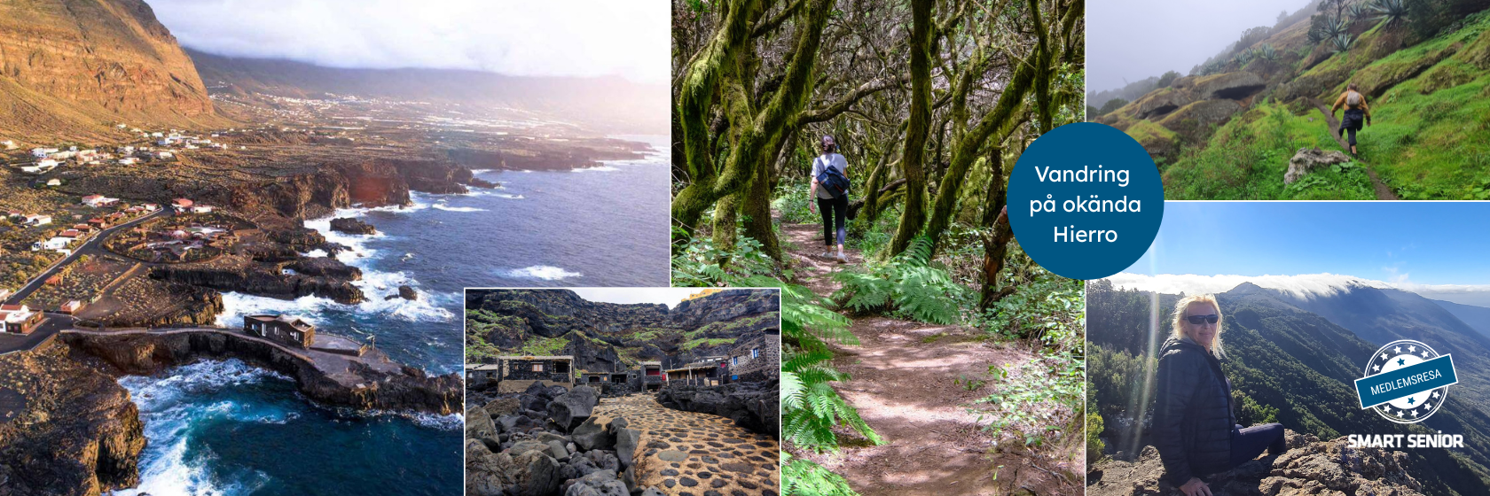 Följ med Smart Senior på en njutningsresa till Kanarieöarnas minsta och yngsta ö, och kanske mest okända, en dold juvel bland öarna. Här möter du en av de vackraste lagerskogarna i världen, en imponerande kustlinje och det största biosfärområdet i Atlanten. Öns bördighet och spektakulära kontraster i naturen gör El Hierro till ett komplett vandringsmål - en av Kanarieöarnas bäst bevarade skatter. Ön erbjuder olika landskap, allt från den vildaste naturen till frodiga skogar. Mytomspunna leder fulla av mystik är en gåva till vandrare som längtar efter natur och frisk luft. Hela det spektakulära landskapet bjuder in till växlande och hisnande naturupplevelser. Vi ska vandra bland molnen, genom regnskog, längs hav och möta lokala mathantverkare som osttillverkare och vinbönder. Vi bor på lokala lite mindre hotell och ett av dem är också ett spahotell. Välkomna till en unik resa på Kanarieön El Hierro tillsammans med er reseledare Kicki Wallblom, som även bjuder på härliga yogastunder och Tina från Smart Senior som är vår värdinna.